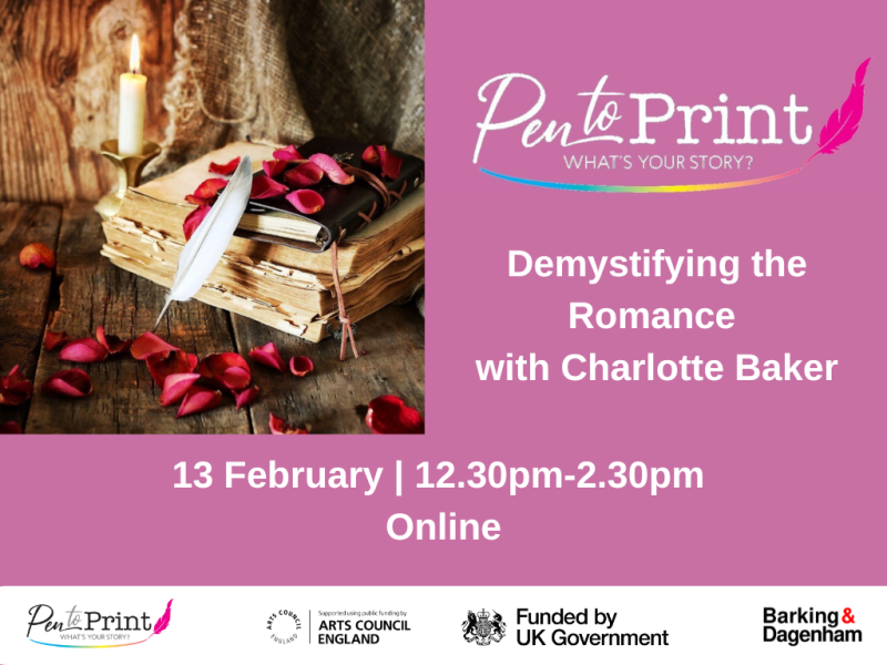 Book Tickets: https://www.eventbrite.co.uk/e/pen-to-print-online-demystifying-the-romance-with-charlotte-baker-tickets-1980456026287