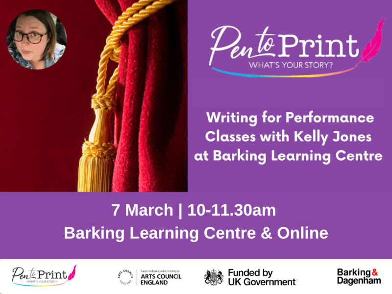 Book Tickets: https://www.eventbrite.co.uk/e/pen-to-print-writing-for-performance-class-tickets-1672779471429