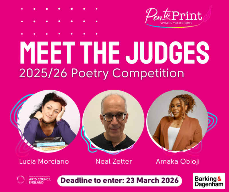 Amaka Obioji is a writer and poet who runs a bimonthly poetry group for Pen to Print at Dagenham Library